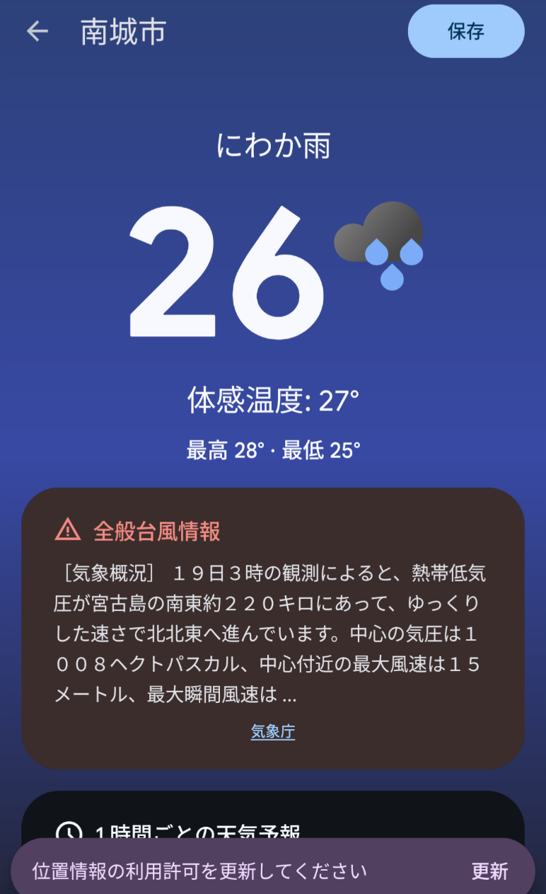 熱帯低気圧が近くにあるため天気がこれから変わりやすく雨がところどころ降っています。